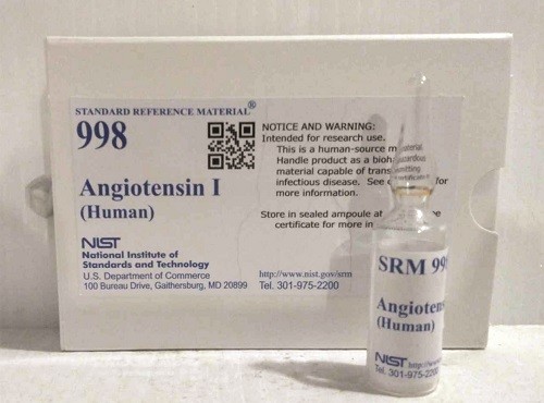 SRM 998 血管緊張素 I主要用于腎素測定的校準和標準化,并用作氨基酸分析和高效液相色譜 (HPLC) 的參考肽。一個單位的 NIST SRM 998 由 0.5 mg 化學合成的血管緊張素 I 組成。