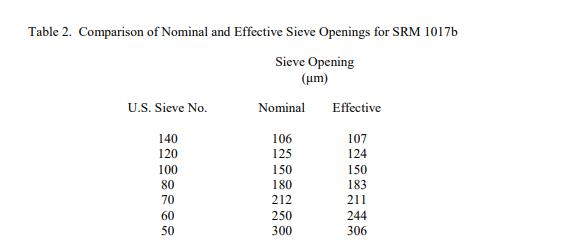 表 2 中提供了標稱和有效篩孔的信息值,用于確定瓶子之間的變異性以及與 SEM 結果進行比較。圖 1 是 SEM 和篩分結果的圖形比較。信息值被認為是 SRM 用戶感興趣的值,但沒有足夠的信息來評估與該值相關的不確定性,或者只進行了有限數量的分析 [1]。信息值不能用于建立計量溯源性。