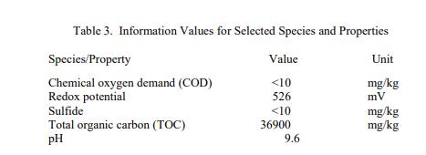 NIST SRM 2701 受污染土壤中的六價鉻(標準品)表 3 中提供了硫化物、總有機碳 (TOC)、化學需氧量 (COD)、pH 和氧化/還原電位的信息值,作為材料成分和特性的附加信息。信息值被認為是 SRM 用戶感興趣和使用的值,但沒有足夠的信息來充分評估與該值相關的不確定性,或者只進行了有限數量的分析 [1] .信息值基于來自單個合作實驗室的測量值。信息值不能用于建立計量溯源性。