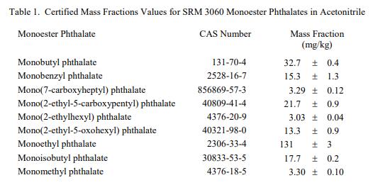 產品名稱:標準參考物質 NIST SRM 3060 - 鄰苯二甲酸單酯在乙腈中的應用