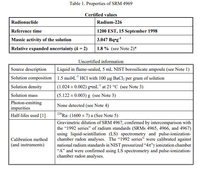 標準參考物質 NIST SRM 4969 - Radium-226放射性標準
