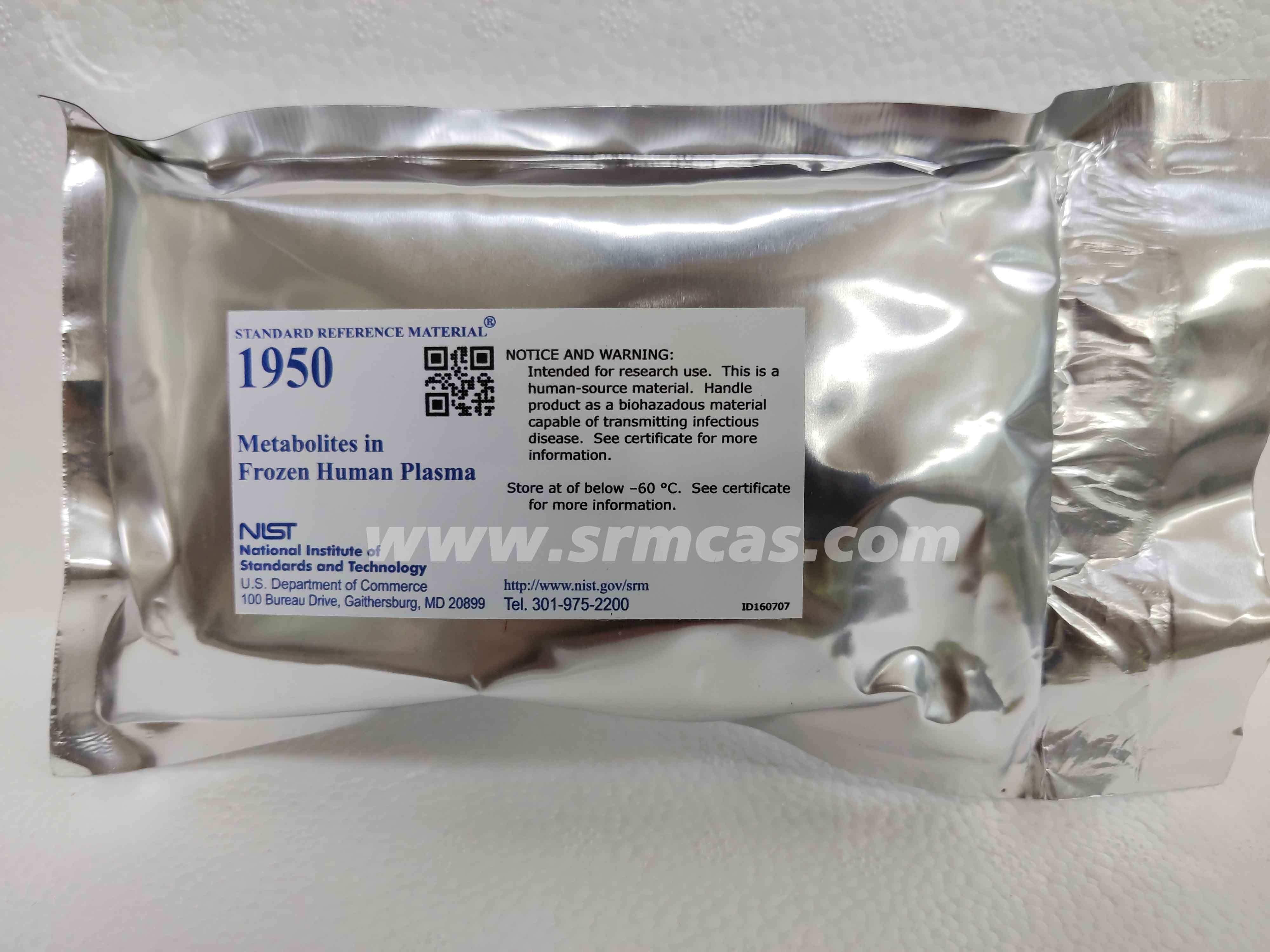 危險等級:SRM1950 冷凍人血漿中的代謝物不被認為對運輸有害。